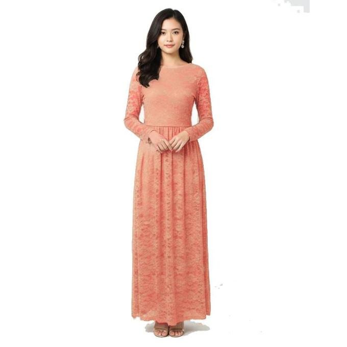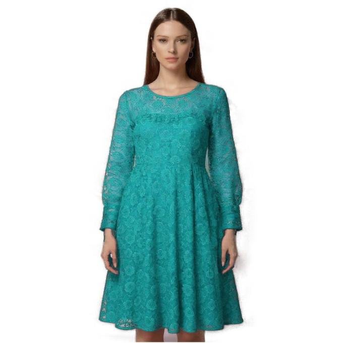 فستان دانتيل ببطانة طويل بكمام طويلة