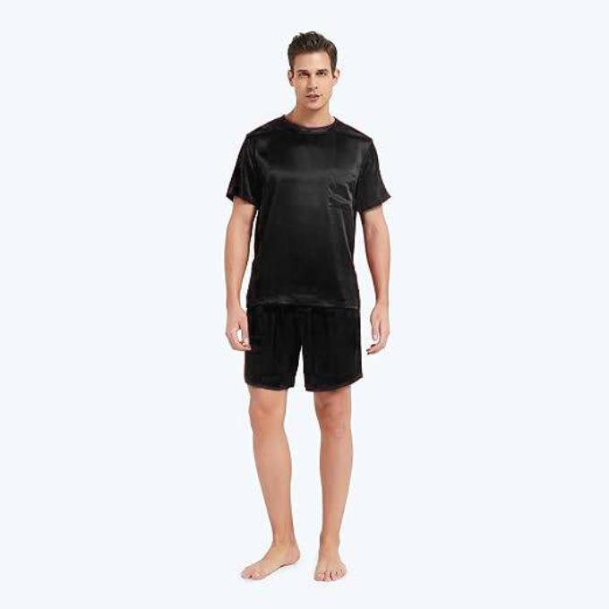 بيجامة ستان رجالى بزراير واكمام طويلة