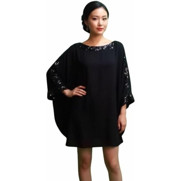 بلوزة نسائية بأكمام واسعة مع ترتر، أسود، تصميم فضفاض مصنوع من خامات عاليه الجوده الخامات المستحدمه تمنحك الأستمتاع بالنعومة على بشرتك حتى تدمج الجمال مع الراحة