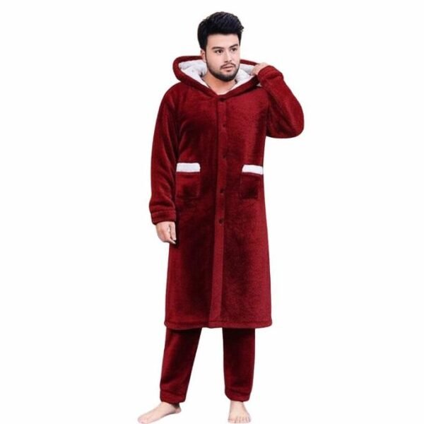 بيجامة رجالى من خامة الفرو قطعتين روب بزراير طويل وبنطلون