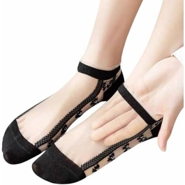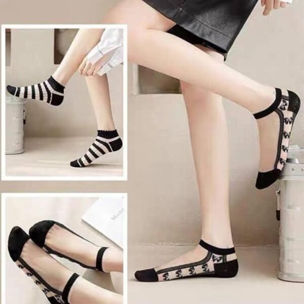 جوارب نسائية شفافة بتصميم مخطط وفيونكات، أسود وأبيض، مجموعة من 5 قطع مع شراب هدية مصنوع من خامات عاليه الجوده الخامات المستحدمه تمنحك الأستمتاع بالنعومة على بشرتك حتى تدمج الجمال مع الراحة