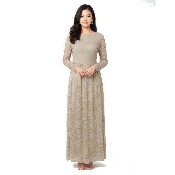 فستان دانتيل ببطانة طويل بكمام طويلة