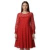 * التصميم: فستان دانتيل بأكمام طويلة، ياقة مستديرة، وقصة متوسطة الطول.