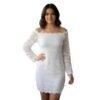فستان دانتيل مبطن بأكتاف مكشوفة، أكمام طويلة، قصير، متوفر بالأسود والأبيض