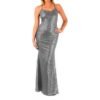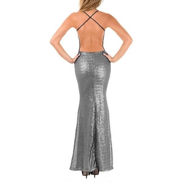 فستان سهرة من الترتر الفضى اللامع مبطن