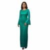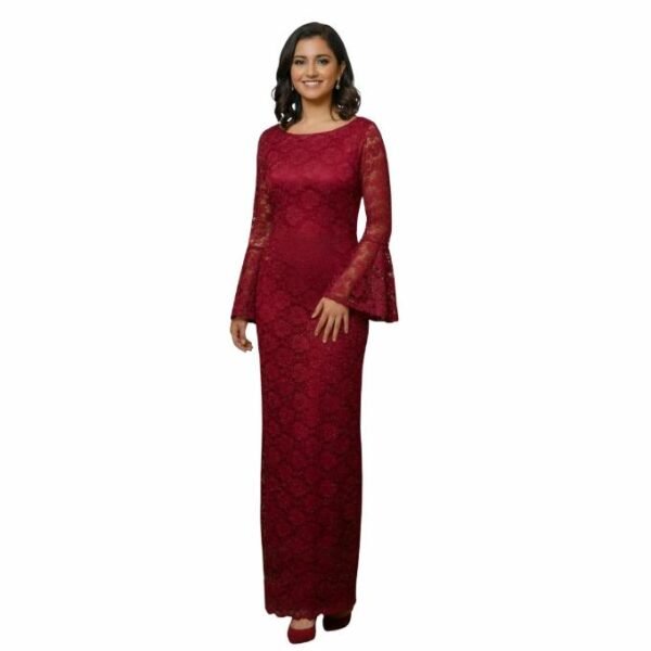 تصميم أنيق: فستان طويل من الدانتيل الفاخر بنقشة زهرية جميلة، مثالي للمناسبات الرسمية والحفلات.