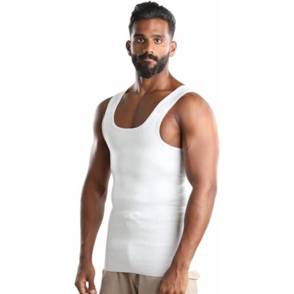 قميص رجالي مشد لتنحيف الجسم وإخفاء الكرش، لون أبيض، بدون أكمام مصنوع من خامات عاليه الجوده الخامات المستحدمه تمنحك الأستمتاع بالنعومة على بشرتك حتى تدمج الجمال مع الراحة