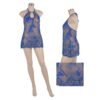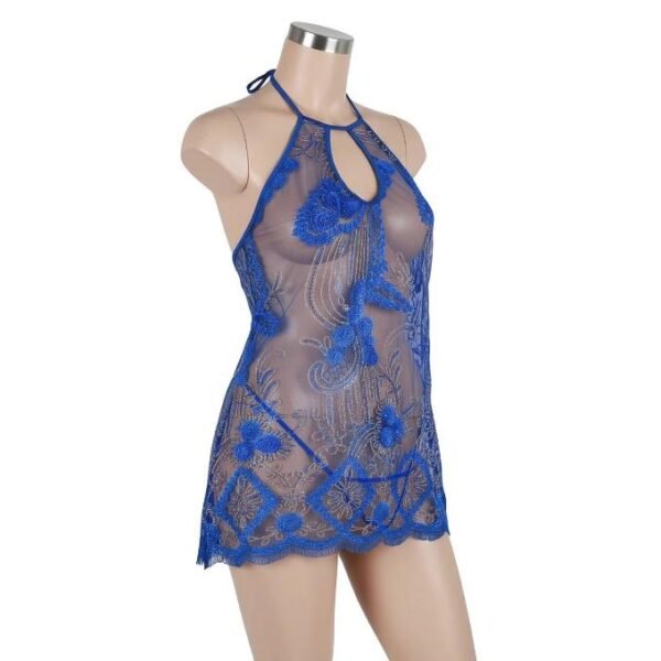 قميص نوم لانجيري من التل المطرز، لون أزرق، بتصميم هالتر مع فتحة أمامية وظهر مفتوح